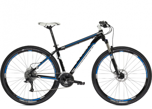 Trek Cobia - горный велосипед с колесами 29" для спортсменов начального уровня, 30 передач, гидравлические дисковые тормоза, амортизационная вилка RockShox с ходом 100 мм, двойные Обода Обода Bontrager AT-850, оборудование Shimano и Sram, компоненты Bontrager. Назначение велосипеда: регулярные поездки во внедорожных условиях, не агрессивного характера, кросс-кантри, трэйл. Установка багажника не предусмотрена.