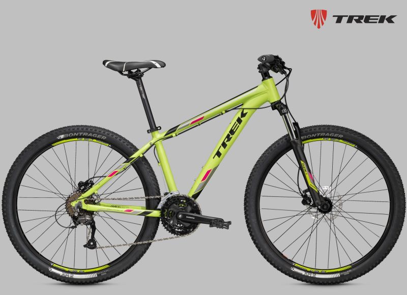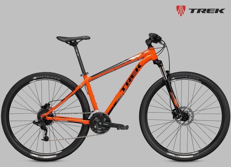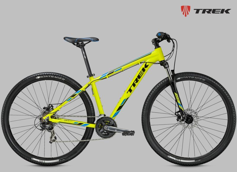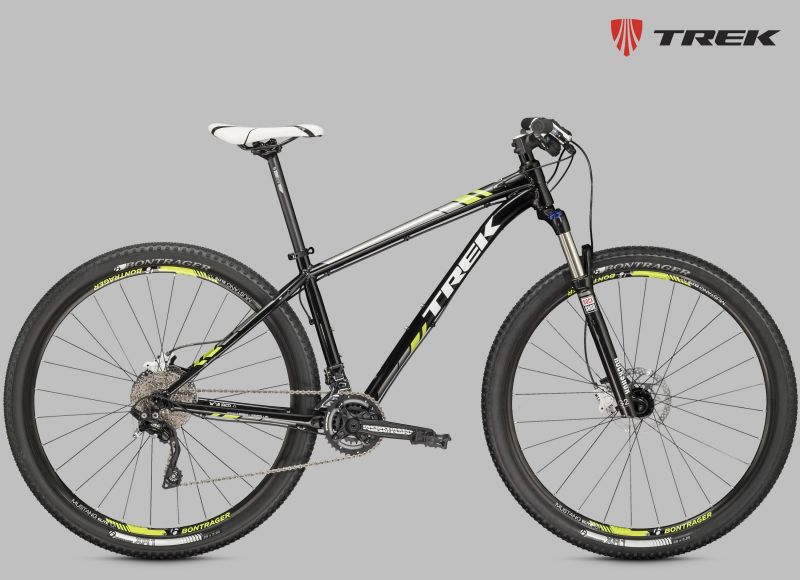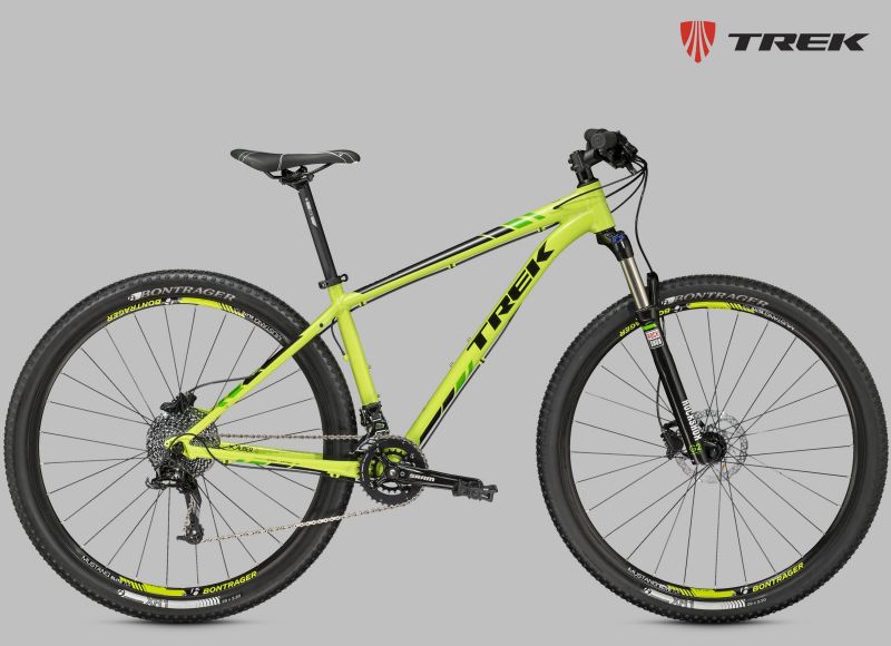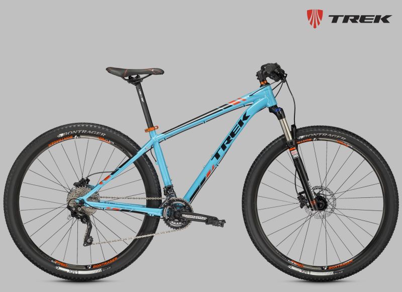 Хардтейл на алюминиевой раме c агрессивной геометрией Genesis 2.0, амортизационная вилка RockShox XC30 с ходом 100 мм и Turnkey lockout, оборудование SRAM, расчет 2х10, обода Bontrager Mustang Elite Tubeless Ready, гидравлические дисковые тормоза Shimano M395. Размер колеса в соответствии с Trek Smart Wheel Size: 27.5" для размеров 13,5" и 15,5", 29" для остальных размеров.