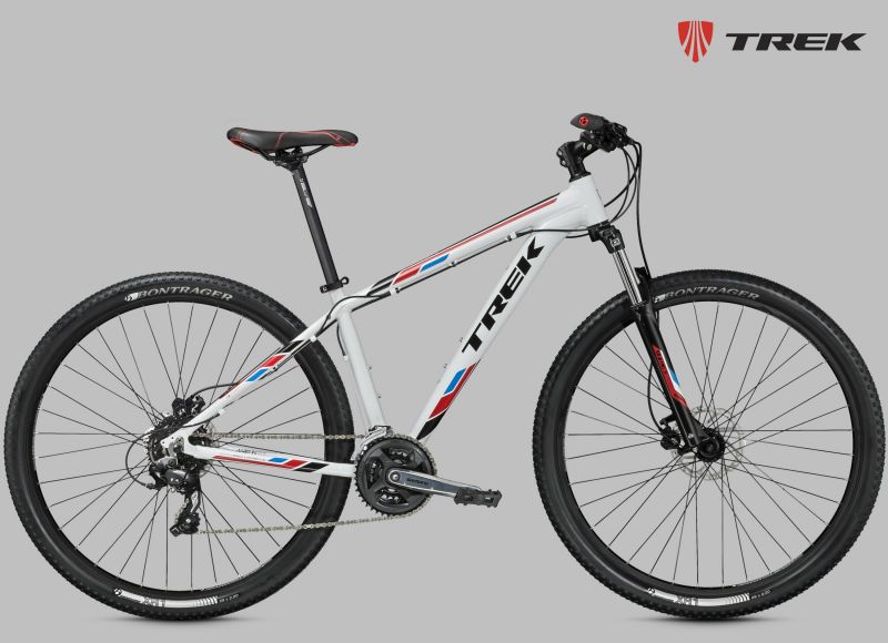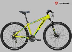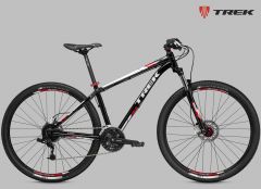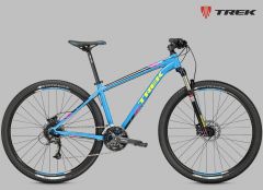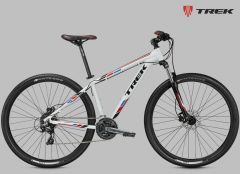 Классический хардтейл на алюминиевой раме c геометрией Genesis 2.0, амортизационная вилка SR Suntour XCT с ходом 100 мм, задняя кассетная втулка, двойные обода, 27 скоростей, гидравлические дисковые тормоза Tektro M290. Размер колеса в соответствии с Trek Smart Wheel Size: 27.5" для размеров 13,5" и 15,5", 29" для остальных размеров.