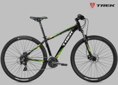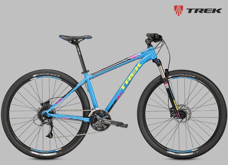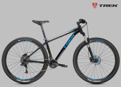 Хардтейл на алюминиевой раме c агрессивной геометрией Genesis 2.0, амортизационная вилка RockShox XC30 с ходом 100 мм и Turnkey lockout, оборудование Shimano, двойные обода, 27 скоростей, гидравлические дисковые тормоза Shimano M355. Размер колеса в соответствии с Trek Smart Wheel Size: 27.5" для размеров 13,5" и 15,5", 29" для остальных размеров.
