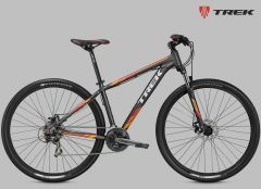 Классический хардтейл на алюминиевой раме c геометрией Genesis 2.0, амортизационная вилка SR Suntour M-3030 с ходом 75 мм, задняя кассетная втулка, одинарные обода, 21 скорость, механические дисковые тормоза. Размер колеса в соответствии с Trek Smart Wheel Size: 27.5" для размеров 13,5" и 15,5", 29" для остальных размеров.