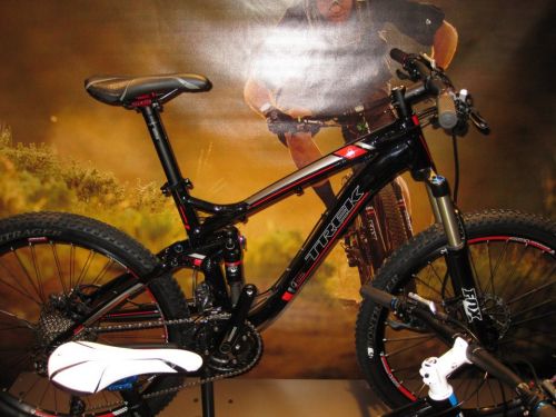 На фото Trek-2013 Fuel EX 7 в двух дизайнах. Модель оборудована вилкой FOX с инновационной регулировкой CTD (Climb-Trail-Descend). Эта регулировка позволяет изменять настройку вилки для подъема-езды-спуска одним щелчком переключателя на вилке. Задний аммортизатор FOX DRCV специальной конструкции, сделанной специально для Trek. Трансмиссия Shimano SLX.